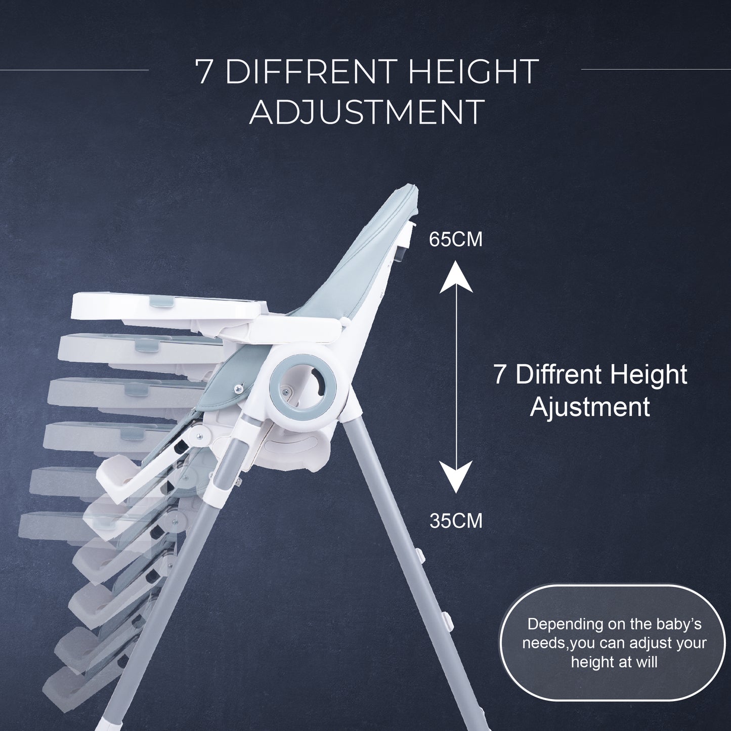 - 7 Adjustable height level to suit baby's comfortable